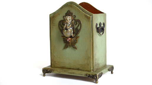 Такие аксессуары для интерьера в магазинах продаются за большие деньги. Я сделала из картонки, краски и филиграни. Карандашница-органайзер