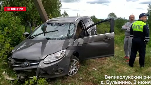 Пьяный водитель опрокинул автомобиль и протаранил столб ЛЭП в Великолукском районе