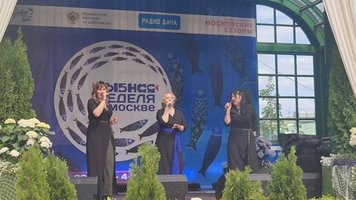 Женщины поют песню DJ Smash feat Винтаж - "Москва". Песни о Москве в центре на площадке Московское сезоны, когда проходила рыбная неделя