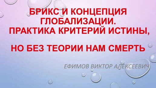 "Путь гармоничного единения человечества, развития финансово-экономической системы БРИКС"