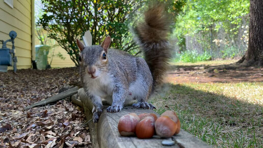 Необычайно хорошенькая белка с удовольствием грызет фундук