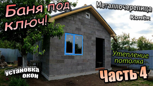 Стропильная система бани \ Подшив карнизных свесов \ Утепление потолка \ Монтаж металлочерепицы и конька \ Установка окон (май 2023)