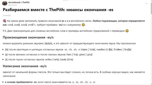 Разбираемся вместе с ThePith: нюансы окончания -es. Грамматика английского языка