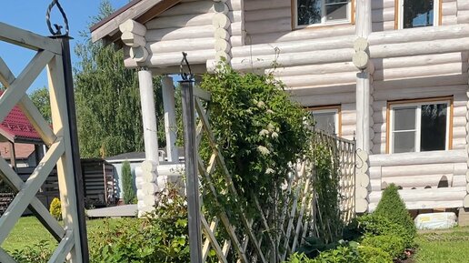 Теневая клумба с северной строны шпалеры рано утром. Роса на листиках.