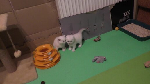 Нападение мальеньких, беленьких котят на большую лохматую кошку Олю