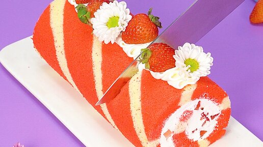Вкусный клубничный рулет который невозможно остановиться есть!