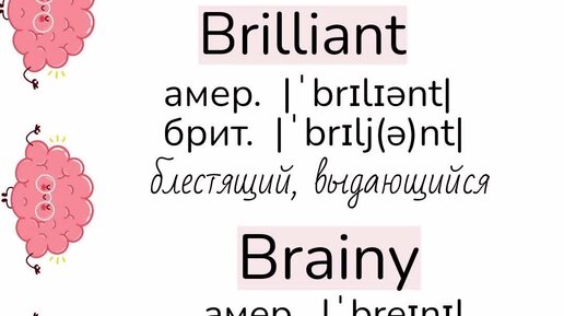 Words related to smart/слова, близкие по значению к слову smart (умный)👉 brilliant, brainy, nimble, resourceful 👇Примеры👇