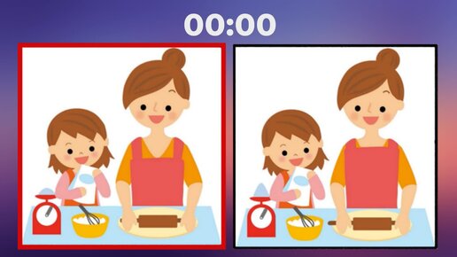 Мама с дочкой готовят торт. Найди три отличия на картинке.