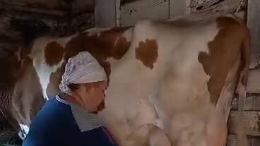 Дою корову Малышку/Видео из архива.