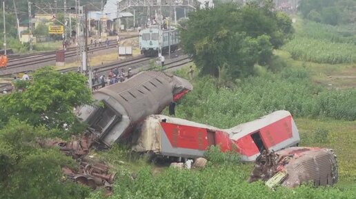 Аварийные службы приступили в разбору вагонов после крушения поездов в Индии