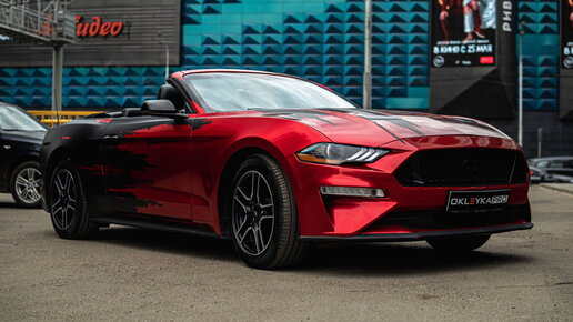 Форд Мустанг кабриолет оклейка в два цвета, антихром, тонировка, перетяжка ремней и руля, химчистка