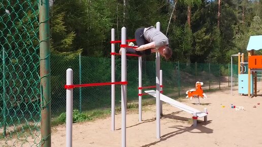 Пришёл на площадку на даче и удивил всех воркаутскими выкрутасами