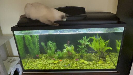 Видит глаз да зуб неймет 😸 Хитрые рыбки и умная Тайская кошка Целестина