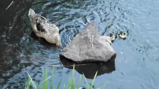 Утята ищут еду на камнях