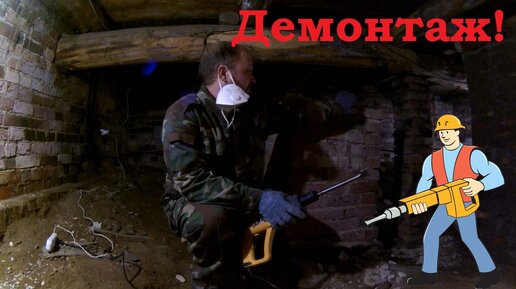 Демонтаж старинного фундамента печи, построенного на известковом растворе.