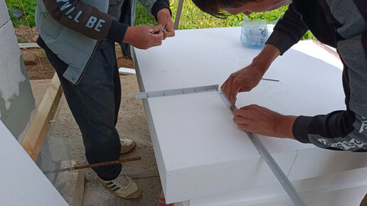Обучаю рабочих заказчика вырезать Гешки из пенополистирола ППС16ф 150мм. Технология СФТК Мокрый Фасад, системы Ceresit и Baumit