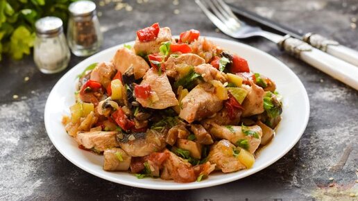 Блюдо получается очень ароматным и вкусным. Овощное рагу с курицей.