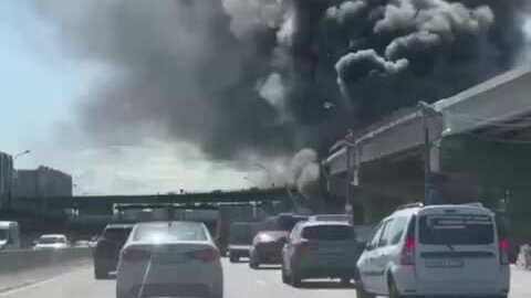 В Москве на Каширском шоссе горит стройка