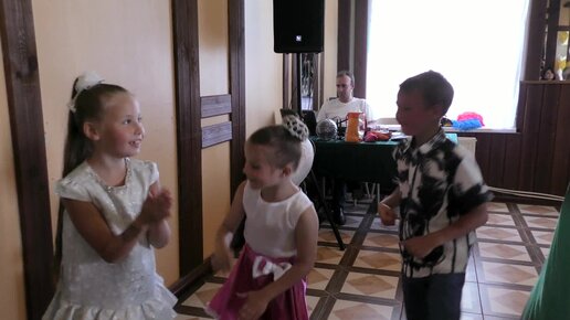 Тамада развлекает детей на свадебном банкете