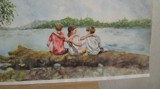 Попросила Селвет показать свои акварели, с.Черница, Бургасская обл., Болгария