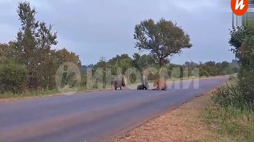 Леопард решил полакомиться семьей дикобразов. Ответ был жесткий