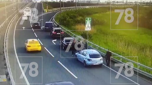 Массовая драка со стрельбой после ДТП на пересечении Муринской дороги и Пискарёвского проспекта попала на видео.