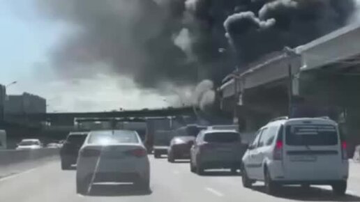 Клубы черного дыма на Каширском шоссе. В Москве на строительстве транспортной развязки произошел пожар.