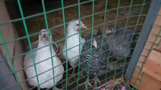 Курочки не понимают, что происходит. Дождь стучит по крыше.