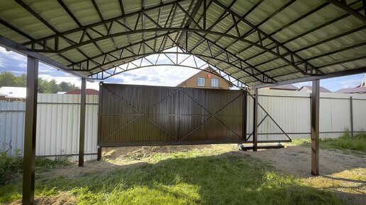 Навес для машины из металлочерепицы 6х6 и откатные ворота 5х2 от мастерской металлообработки Спецкаркас