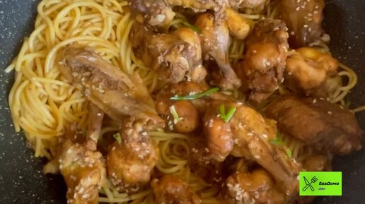 Ужин на скорую руку! Куриные крылышки со спагетти! Полчаса и готово!