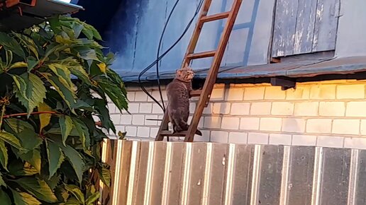 Птички прогоняли кота, а он хотел в их гнездо добраться