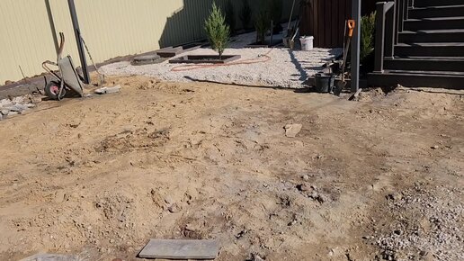 Отсыпка основания под плитку, установка крышки люка в плоскость с плиткой