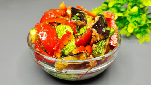 Все лето готовлю такую пикантную закуску из кабачков и баклажанов необычным способом: особая заправка превращает ее в настоящий хит