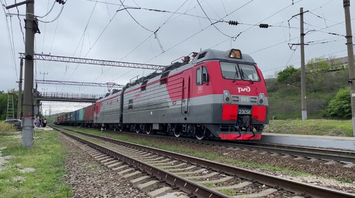 Электровоз 2ЭС5К с контейнерным составом следует в Новороссийск