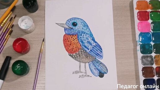 Акварельная птица. Как нарисовать. Пошаговый рисунок для начинающих