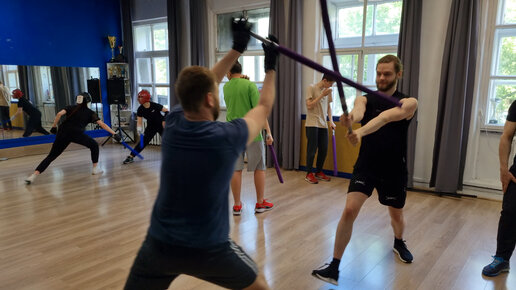 Фехтование японским мечом в школе кендзюцу Katana Club - защита со сливом и удар с уклонением