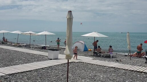 Пляж Морской Бриз. Лазаревское Сочи. Яркие признаки лета. Кормилец уже на море. Погода 7 июня 2023. Комфортно, воздух +25 С, вода +21 С