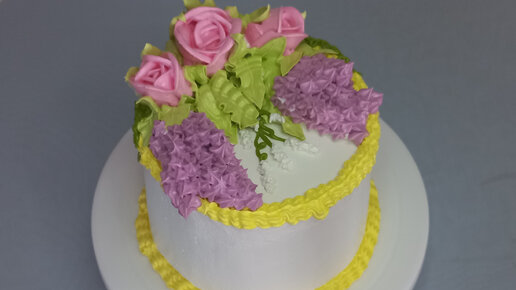 ОФОРМЛЕНИЕ ТОРТА ЦВЕТАМИ ИЗ БЗК СИРЕНЬ РОЗЫ