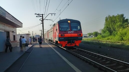 Электропоезд ЭД4М-0280 прибывает и отправляется с о.п. Совхоз Бердский