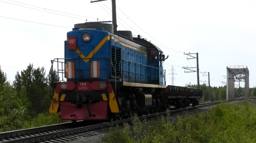 Синий ТЭМ2-6273 с двумя платформами и приветливым помощником