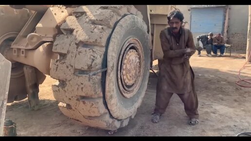 замена и ремонт ОГРОМНОГО колеса фронтального погрузчика голыми руками