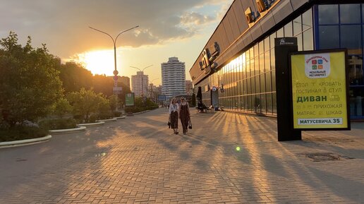 Закат на Комаровском рынке в Минске, Беларусь, июнь 2023. Молодежь гуляет и веселится