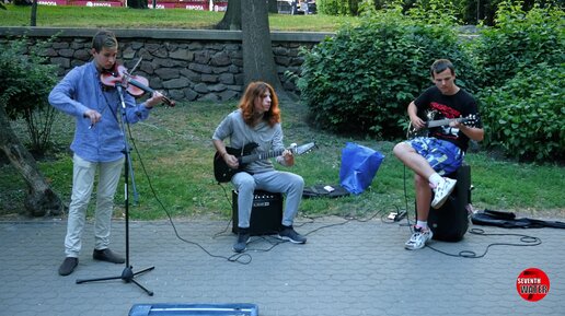 Класс!! Легкая импровизация уличных музыкантов в вечернем парке!!