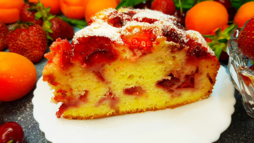 Ягодный пирог с клубникой – перемешал, испек, готово. Вкусный рецепт клубничного пирога к чаю. Наш любимый клубничный десерт.