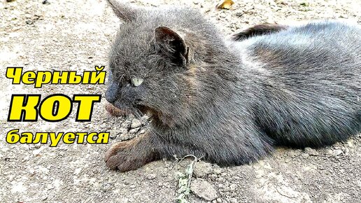 Черный кот ✅Черныш балуется Играю палочкой с черным котом❗❗❗