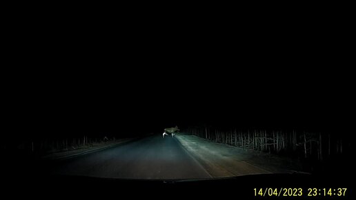 Стадо лосей переходят в ночное время автодорогу Советский - Урай
