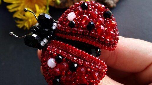 🐞 Как сделать брошь "Божья коровка" из бисера (мастер-класс). Видео