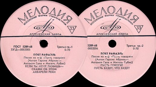 ПОЁТ РАФАЭЛЬ Песни из к/ф «Пусть говорят» - пластинка Миньон 33ГД-0002005-6