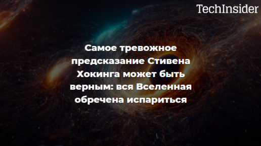 САМОЕ ТРЕВОЖНОЕ ПРЕДСКАЗАНИЕ СТИВЕНА ХОКИНГА МОЖЕТ БЫТЬ ВЕРНЫМ: вся Вселенная обречена испариться