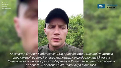 Мобилизованный орловец призвал Клычкова защитить его семью от ректора ОГАУ